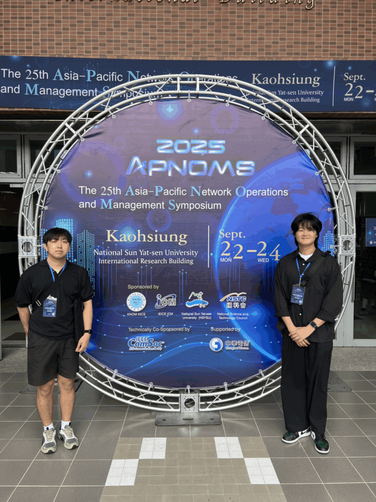 APNOMS 2025 를 대만에서 개최했습니다.남승우, “Improving Oscillation & Navigation in Complex Environments Based on ROS2 Through Path Modification”장윤성, “Multi-Task Detection and Classification of Encrypted Traffic Sequences via Session2Token Embedding”모두 논문 2편을 발표했습니다.